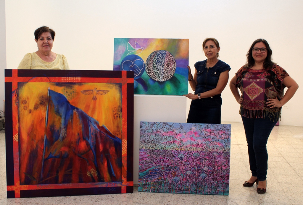 De igual manera, figuran “La guerra y la paz”, de María Antonieta González; “Siempre la paz”, de la propia coordinadora; una fotografía sin título, de Carlos Navarrete, y tanto “Media noche” como “Renacer o explotar”, de Violeta Azcona.