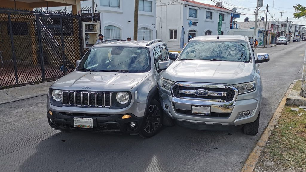 Pero al invadir el carril izquierdo de circulación sin la debida precaución, generó el impacto lateral contra la camioneta Ford, tipo Ranger, color gris, con matrícula CM-2785-A de Campeche, cuya conductora avanza- ba en aparente preferencia en la misma dirección.