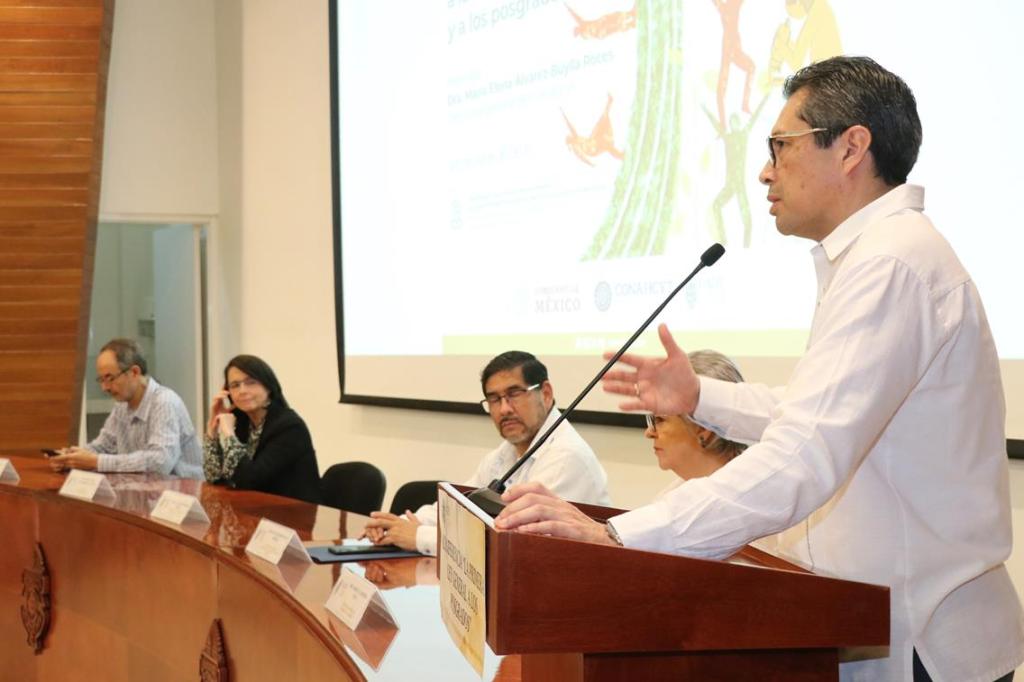 Al presentar la conferencia «La primera Ley General de HCTI: Becas, SNI y apoyo sostenido a la Investigación y a los Posgrados», aseguró que 2022 fue un buen año para la UADY en término de apoyos y becas para investigación y posgrados, pues casi todos los estudiantes fueron becados.