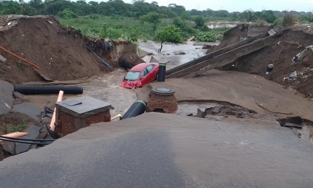 Las lluvias de esta madrugada dejaron importantes afectaciones en un par de fraccionamientos del norte de la ciudad de Veracruz, donde dos vehículos fueron arrastrados a socavones.