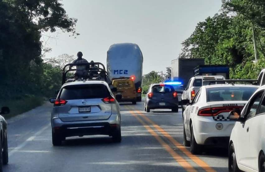 El paso del convoy por la carretera federal y el boulevard Colosio, provocó desviaciones del tránsito vehicular entre las avenidas López Portillo y Huayacán.