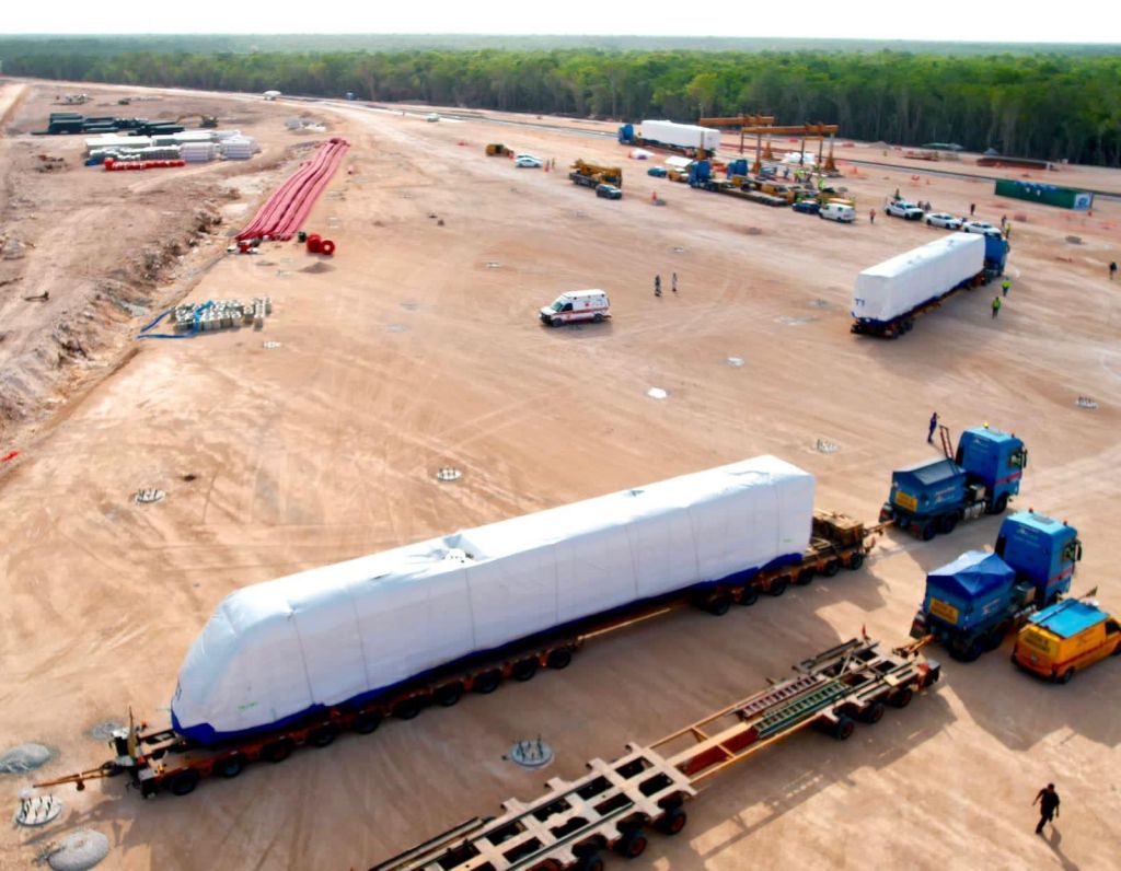 «Esta tarde llegaron al Taller y Cochera de #Cancún los otros 3 vagones desde Ciudad Sahagún, Hidalgo; #YaHayTrenMaya y ya está completo el primer tren para su acoplamiento e inicio de pruebas», expresó.