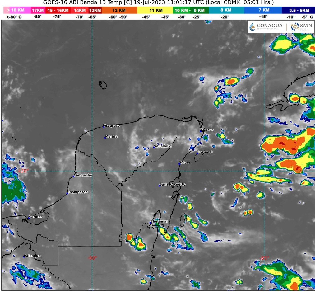 De acuerdo a información del Servicio Meteorológico Nacional (SMN), en Quintana Roo podrían presentarse intervalos de chubascos con lluvias puntuales fuertes (25 a 50 mm); temperaturas máximas de 35 a 40 grados Centígrados con alto contenido de humedad.