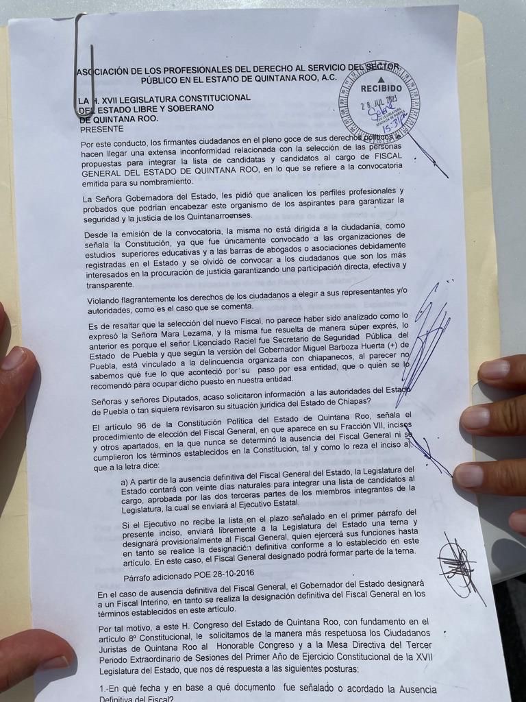 De igual forma, solicitaron que se vuelva a convocar a la ciudadanía, para que participe en la selección del Fiscal General del Estado, misma que debe incluir todas las disposiciones contenidas en el artículo 96 de la Constitución de Quintana Roo.