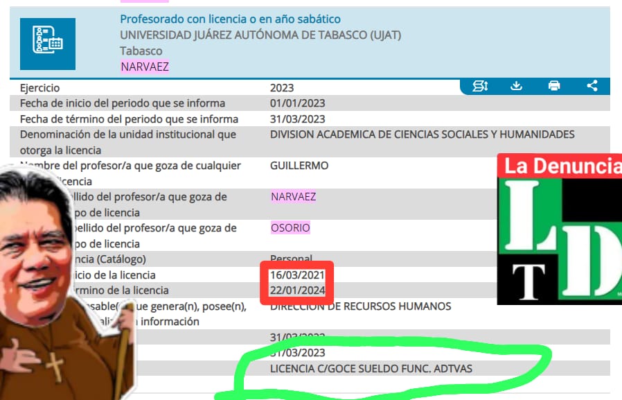 Lo vergonzante de este tema, es que este privilegio solo se lo están dando sus cómplices con lo que dirige la UJAT, ya que para el resto de los docentes ahí si les aplica el reglamento establecido en el nuevo Tabulador.