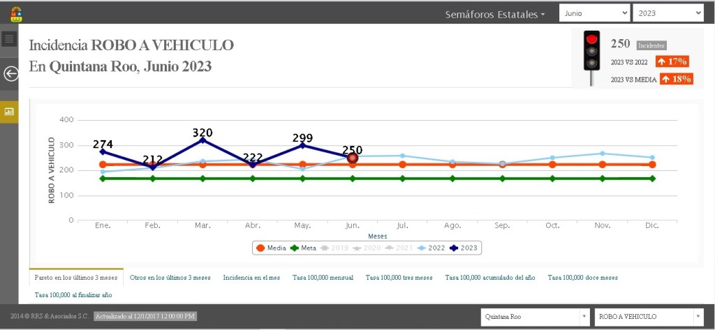 Por otra parte, el robo a vehículos también se mantuvo en color rojo, siendo el mes de marzo donde se reportaron el mayor número de casos 320 incidencias, para finalmente llegar a junio con 250.