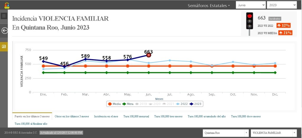 Los casos por violencia familiar reportaron un incremento considerable al cerrar el semestre con 663 incidencias, 12% por arriba de la media y 12% más en comparación con el mismo periodo del 2022.