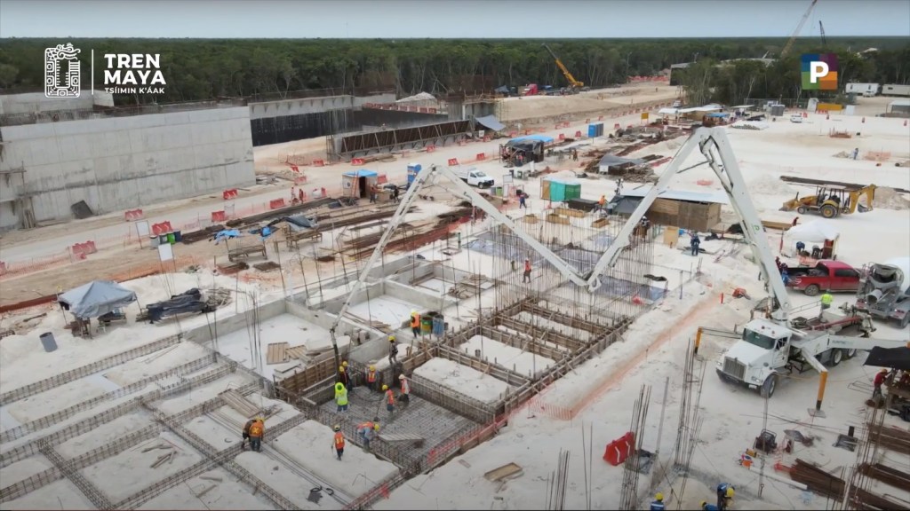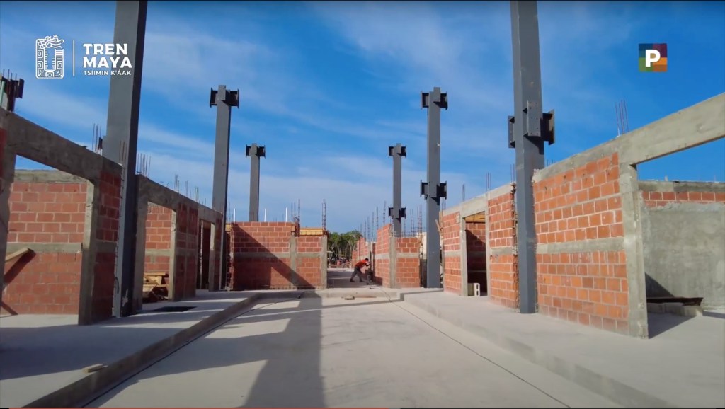 El presidente y director ejecutivo de Mota Engil Latinoamérica, Joao Pedro Parreira, informó que la estación Tulum del Tren Maya avanza con un diseño amable con su entorno sobre una superficie de 81 mil m2, en cuya construcción se aplican mil 439 toneladas de estructura metálica y 24 mil 684 m3 de concreto estructural.