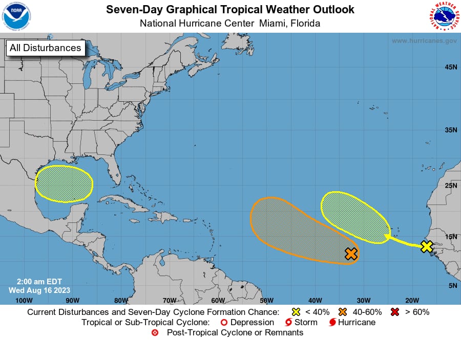Se mantiene vigilancia de una Onda Tropical sobre el occidente del Mar Caribe hacia el sur sobre Honduras, C.A., y más al sur sobre el Océano Pacifico, se mueve al oeste a razón de entre 18 y 27 km/h.