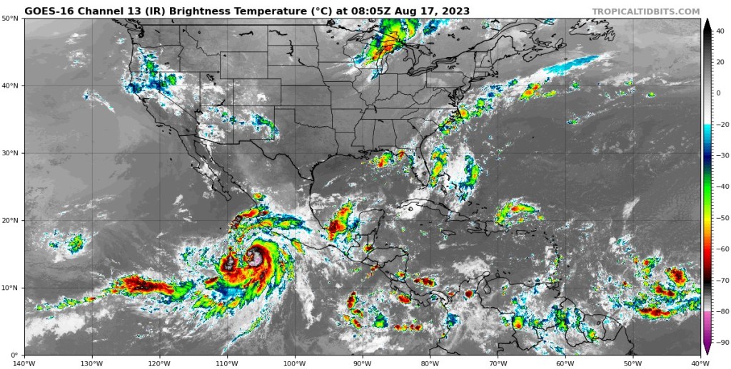 Por su parte, el monzón mexicano e inestabilidad en la atmósfera superior, ocasionará lluvias fuertes a puntuales muy fuertes con descargas eléctricas, rachas de viento y posible caída de granizo en el noroeste del territorio nacional. La entrada de humedad del Golfo de México e inestabilidad en la atmósfera superior, originará lluvias con intervalos de chubascos en el noreste del país.