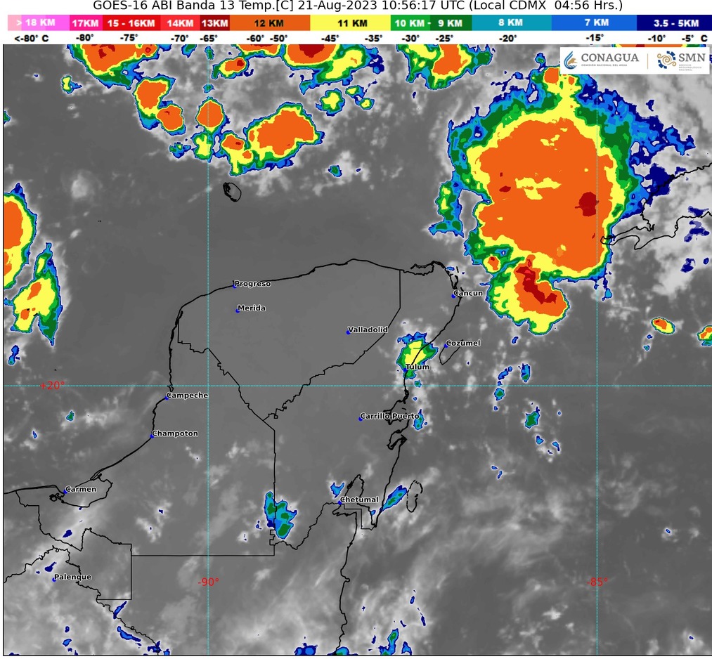 El Servicio Meteorológico Nacional (SMN) pronostica que para Quintana Roo habrá intervalos de chubascos con lluvias puntuales fuertes (25 a 50 mm); temperaturas de 35 a 40 grados Centígrados.
