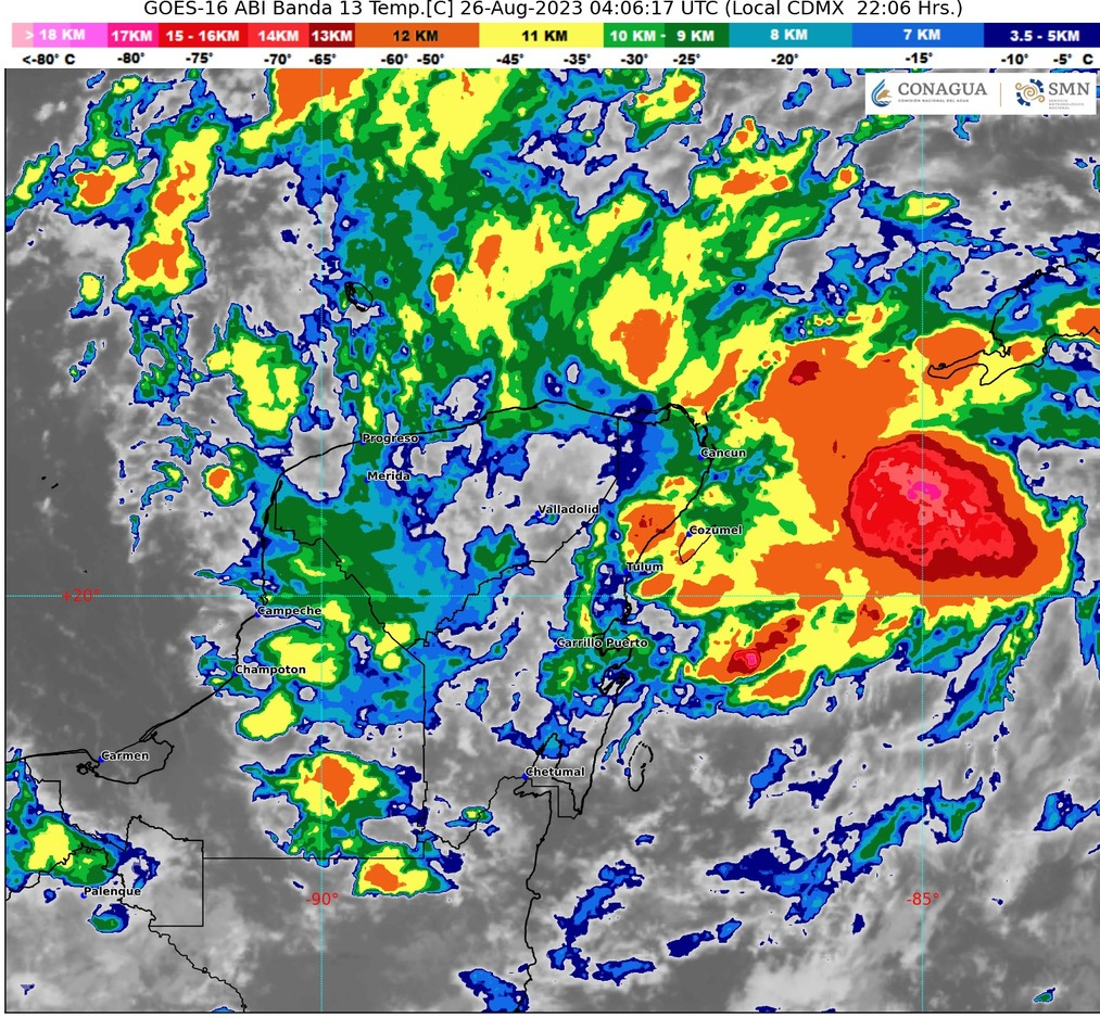 El Servicio Meteorológico Nacional (SMN) informó que para hoy, una zona de baja presión con probabilidad de desarrollo ciclónico, frente a la costa de Quintana Roo y en interacción con un canal de baja presión sobre el sur del Golfo de México, originarán lluvias muy fuertes a puntuales intensas.