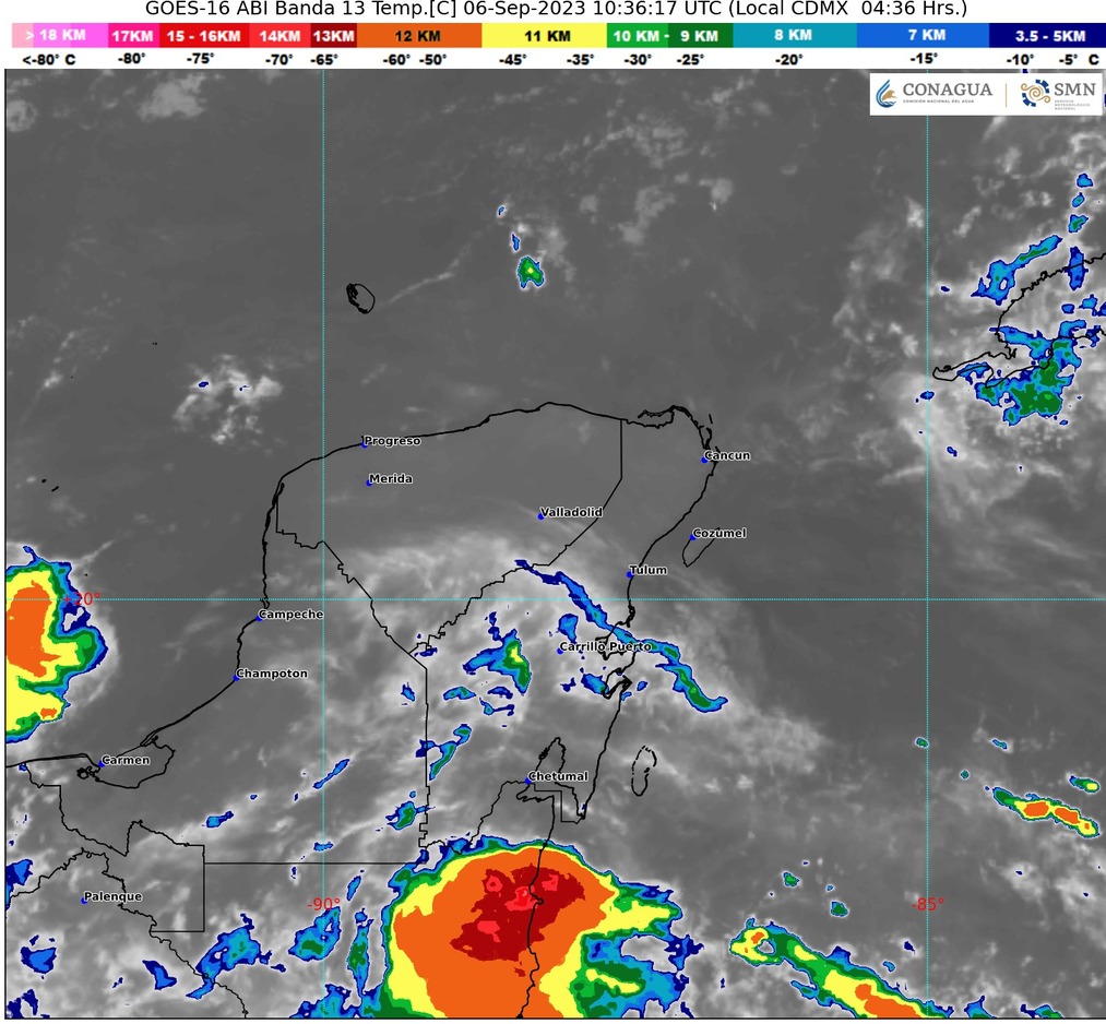 Así lo anunció el Servicio Meteorológico Nacional (SMN) y agrega que en la Península de Yucatán habrá cielo medio nublado a nublado durante el día, con intervalos de chubascos y lluvias puntuales fuertes acompañadas de descargas eléctricas en Campeche, Yucatán y Quintana Roo, lluvias que podrían generar reducción de visibilidad y encharcamientos.