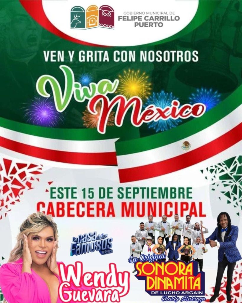 Después del emotivo grito de independencia, «La Original, Sonora Dinamita de Lucho Argain y Charly Marrugo» se presentará en Felipe Carrillo Puerto, a petición de la alcaldesa, Mary Hernández.