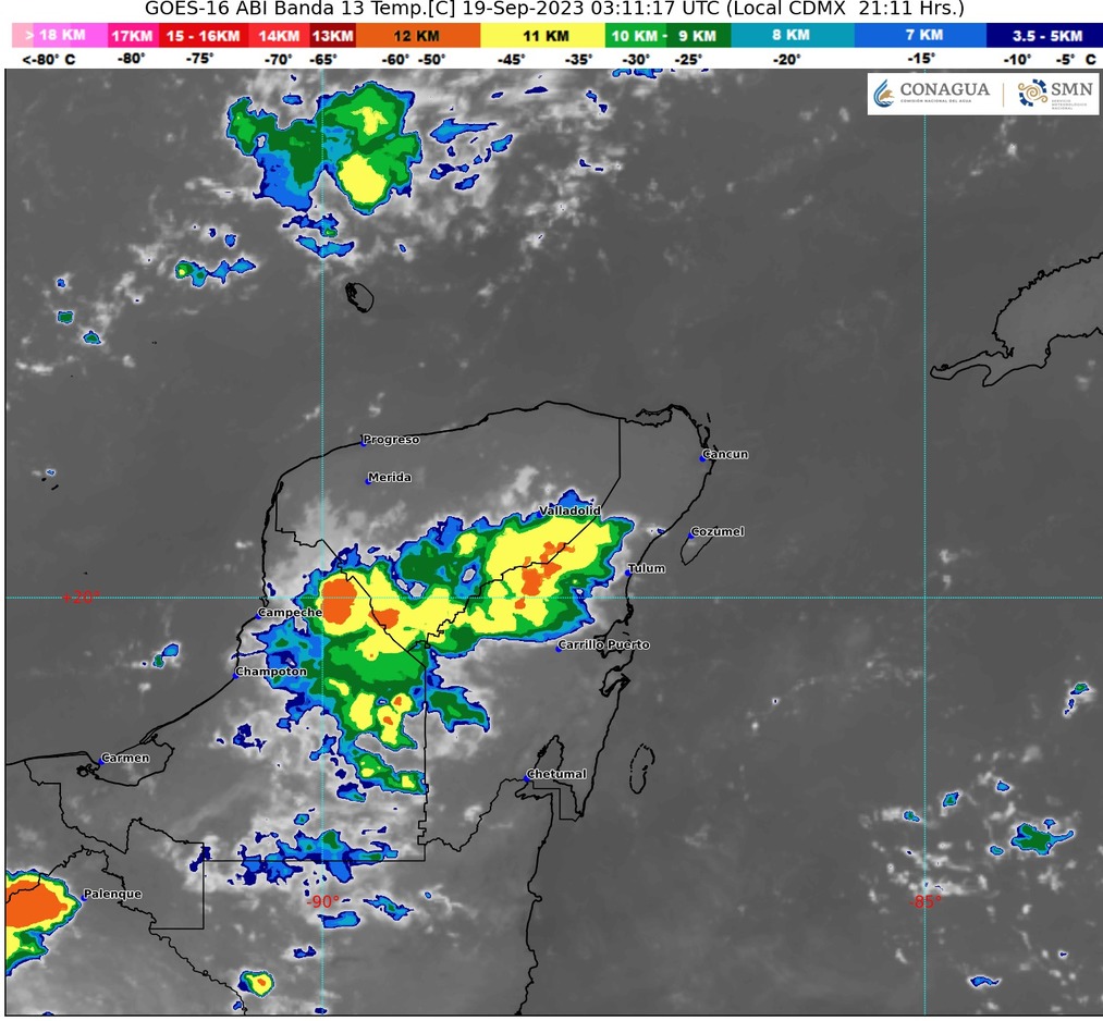 Para la Península de Yucatán habrá cielo medio nublado a nublado con lluvias y chubascos acompañados de descargas eléctricas en Campeche, Yucatán y Quintana Roo; ambiente templado durante la mañana en la región con nieblas en Yucatán y Quintana Roo, caluroso a muy caluroso por la tarde; viento de dirección variable de 10 a 25 km/h con rachas de hasta 40 km/h en zonas de tormenta.