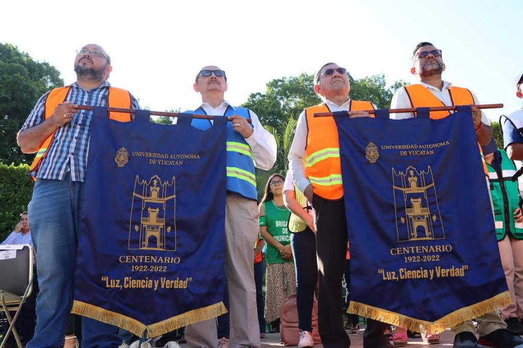 Previamente, el rector participó en la ceremonia de Izamiento de Bandera con motivo al Día Nacional de Protección Civil, realizado por la secretaria general de Gobierno, María Fritz Sierra, donde la Banda de Guerra, combinada por elementos del Ejército Mexicano, Guardia Nacional y Secretaría de Seguridad Pública (SSP) de Yucatán, realizó el toque de silencio para recordar a las víctimas de los terremotos de 1985 y 2017 en la Ciudad de México.