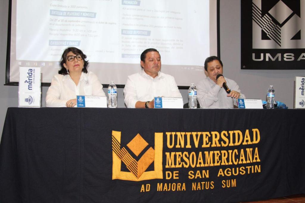 Acompañados por el Secretario Técnico de Deportes de la comuna, Jesús Aguilar y Aguilar, quien asistió en representación del alcalde Renán Barrera Concha; y la Rectora de la UMSA, María Sansores Ruiz; Xavier Burgos Martín, director de Extensión y Vinculación de la escuela, dieron a conocer los detalles de la justa que arrancará a las 6:30 horas, con salida y meta en el Plantel UMSA Reforma, sobre la calle 70 del centro de la capital yucateca.