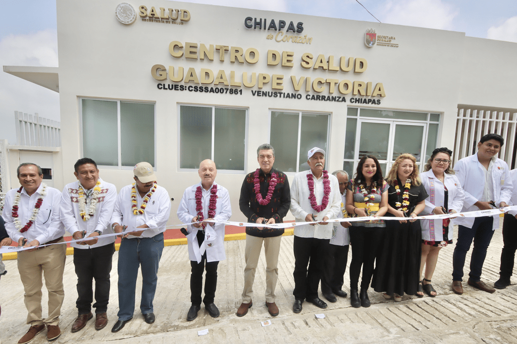 Esta unidad médica se edificó desde cero debido a que su estructura anterior estaba muy dañada y no podía ser solamente rehabilitada.Anunció que, próximamente, se entregará una ambulancia y se instalará un consultorio dental en esta localidad. En el municipio de Venustiano Carranza, el gobernador Rutilio Escandón inauguró la reconversión del Centro de Salud Guadalupe Victoria, el cual se edificó desde cero debido a que su estructura anterior estaba muy dañada y no podía ser solamente rehabilitada, por lo que hoy la comunidad Guadalupe Victoria cuenta con una unidad médica digna y segura. “Además de esta infraestructura, que estaba muy abandonada y ahora está nuevecita, se entregará una ambulancia y ya ubiqué un espacio para que se instale un consultorio dental moderno. Quiero decirles amigas y amigos, paisanos, que invertimos para fortalecer los servicios de salud, pero lo más importante es que no nos enfermemos, que las niñas y los niños crezcan saludables, por eso, también los invito a hacer deporte y cuidarse”, apuntó. Asimismo, el mandatario señaló que llegará otro doctor para el turno nocturno y este Centro de Salud tenga 24 horas de atención: “Porque se puede enfermar alguien en la madrugada o en la noche, para que los atienda aquí, en un espacio amplio y bonito”. Luego de enfatizar que los recursos públicos son para favorecer al pueblo de Chiapas en los diferentes rubros, Escandón Cadenas anunció la posibilidad de mejorar la Casa Ejidal de esta localidad donde, dijo, se practica la fraternidad y el amor al prójimo. A su vez, el secretario de Salud, José Manuel Cruz Castellanos, mencionó que en este gobierno de la Cuarta Transformación se ha priorizado la consolidación de este tipo de infraestructura hospitalaria, que además de combatir el rezago, favorece el cuidado de la salud de la población chiapaneca, tanto en las zonas rurales como urbanas, a través de servicios médicos de calidad. El comisariado ejidal de Guadalupe Victoria, Octavio Félix Fernández, reconoció la sensibilidad política del gobernador al respaldar las necesidades de las comunidades, como la remodelación de este Centro de Salud, el cual cubrirá las necesidades primarias de la gente de esta región; se sumó la presidenta del Comité de Salud, Lucero Vázquez Gómez, quien dijo que Rutilio Escandón siempre será bien recibido en Guadalupe Victoria. Finalmente, el alcalde de Venustiano Carranza, José Luis Avendaño Borraz, resaltó que, gracias a la inversión del Gobierno Estatal, la seguridad médica ahora es una realidad para la localidad de Guadalupe Victoria, mediante este centro de salud que cuenta con infraestructura digna y equipos de calidad, con una amplia gama de medicamentos y todo lo necesario para tratar enfermedades de la población. Estuvieron presentes: las diputadas Martha Verónica Alcázar y Carolina Zuarth Ramos; la jefa del Distrito de Salud I Tuxtla, Brenda Guadalupe López Paniagua; el director general del Instituto de Seguridad Social de los Trabajadores del Estado de Chiapas, Marco Antonio Ordoñez Juárez; el director del Centro de Salud de Guadalupe Victoria, Euliser González Rosales; los alcaldes de Acala, Rodrigo Trinidad Rosales Franco; y de San Lucas, Noé Alejandro Suárez; la presidenta municipal de Emiliano Zapata, Marien Alejandra Román Granados; el empresario chiapaneco, Jesús Orantes Ruiz, así como personal médico y administrativo del centro de salud.