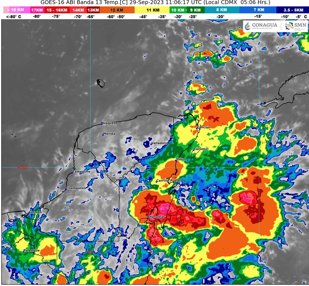 Por la presencia de la Onda Tropical No. 28 en interacción con un canal de baja presión sobre la Península de Yucatán, en Quintana Roo habrá lluvias fuertes con puntuales muy fuertes (50 a 75 mm) durante el transcurso de este día, anunció el Servicio Meteorológico Nacional (SMN).