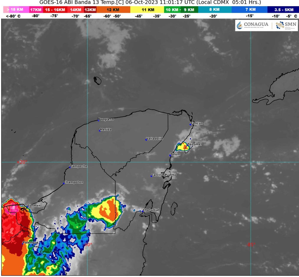 Para la Península de Yucatán habrá cielo medio nublado a nublado la mayor parte del día, con chubascos en Yucatán y Quintana Roo, y lluvias puntuales fuertes en Campeche, acompañadas de descargas eléctricas. Ambiente templado durante la mañana y cálido a caluroso por la tarde; viento del noreste de 10 a 25 km/h con rachas 30 a 40 km/h en la región.