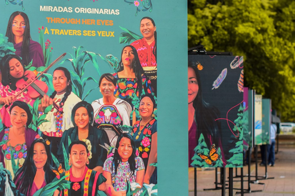 La obra de Citlali Haro visibiliza los rostros de mujeres lideresas indígenas de ambos países.