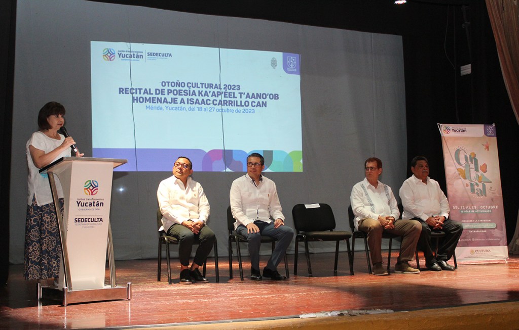 Mérida, Yucatán, 18 de octubre de 2023.- La obra del extinto poeta, narrador, dramaturgo y artista visual, Isaac Carrillo Can, es homenajeada en el encuentro titulado Recital de Poesía Ka’ap’éel T’aano’ob, que desde hoy y hasta el 27 de octubre ofrecerá 25 actividades en el marco del Otoño Cultural, con más de 30 autores de Ciudad de México, Oaxaca, Nayarit, Quintana Roo y Yucatán.