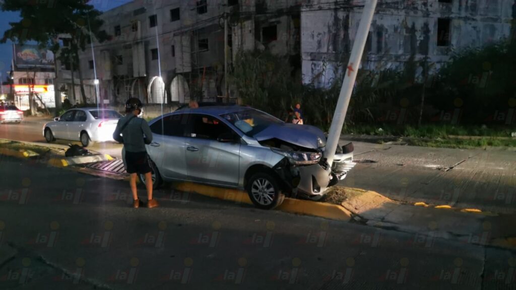 Sin embargo, debido a que iba a exceso de velocidad y por la falta de precauciones, el vehículo terminó chocando de frente un poste de luz del municipio. Según algunos testigos, resultó por una distracción del guiador, en presunto estado de ebriedad.