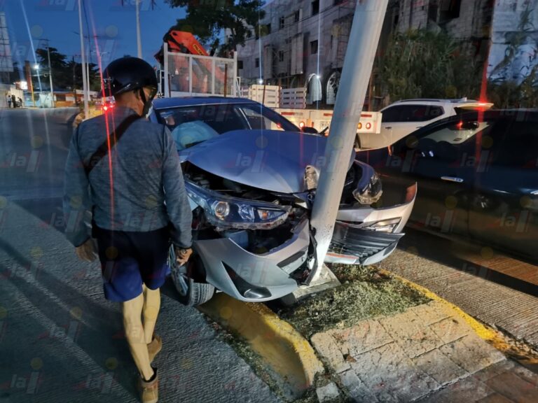 CARMEN.- El conductor de un automóvil chocó contra un poste de luz que se encontraba colocado a mitad del camellón central de la avenida 10 de julio en la colonia Salitral. Se debió a que iba a exceso de velocidad y sin precaución.