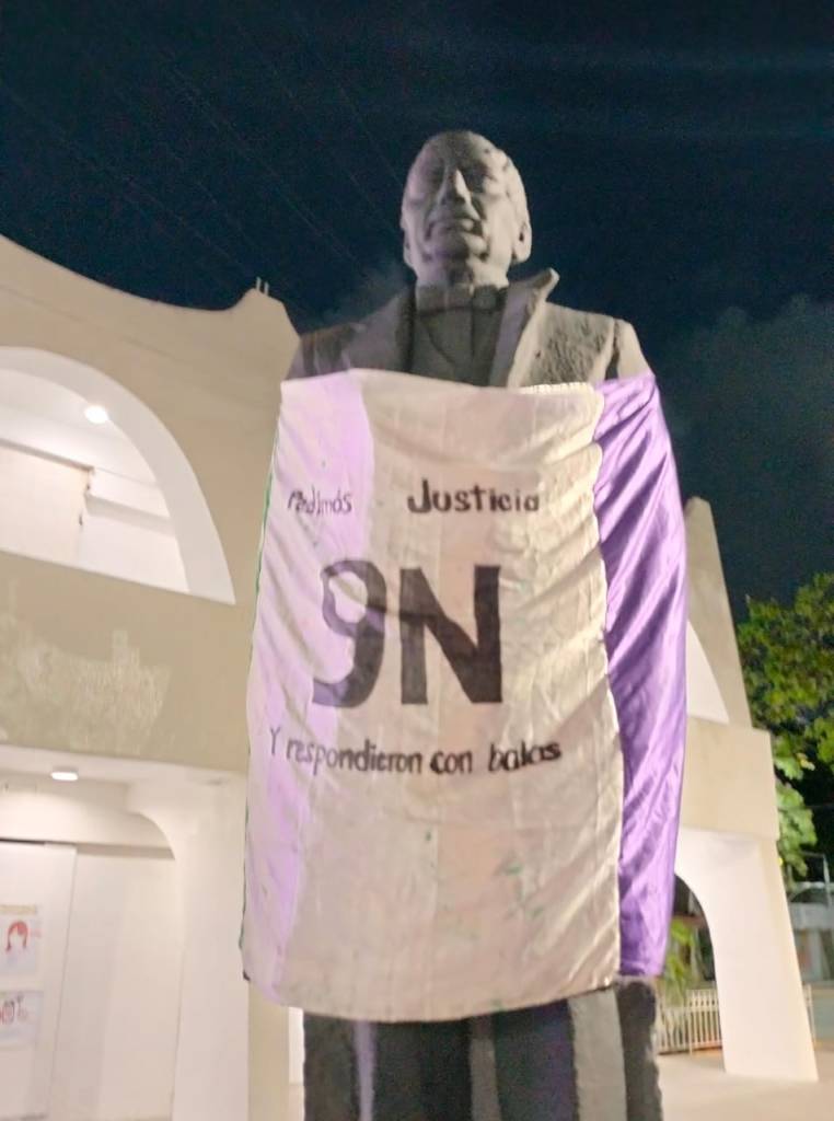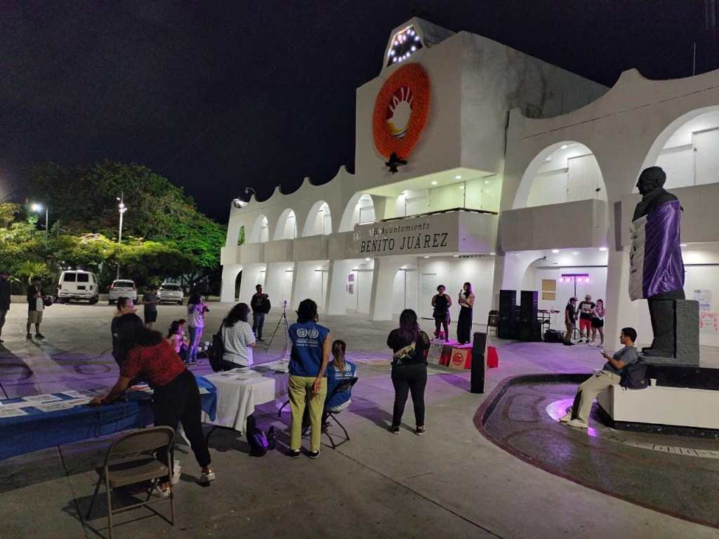 Cancún.- Esta noche, un grupo de ciudadanos se congregó para conmemorar los tres años de la represión a balazos de una manifestación afuera del Palacio Municipal, el 9 de noviembre de 2020, incidente conocido como 9N. Allí, el llamado Comité de Víctimas lamentó la falta de justicia, toda vez que los 11 policías que llegaron a ser acusados gozan de libertad.