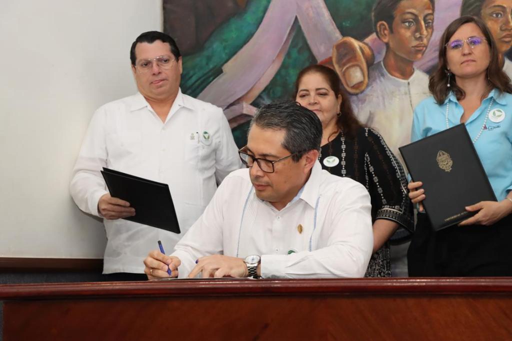 Signaron el documento el rector de la Universidad Autónoma de Yucatán (UADY), Carlos Estrada Pinto; el rector de la Universidad Autónoma de Campeche (UACAM), José Alberto Abud Flores; el director general del Tecnológico Nacional de México Campus Chiná, Marco Gabriel Rosado Ávila; la rectora de la Universidad Autónoma del Carmen (UNACAR), Sandra Martha Laffón Leal.