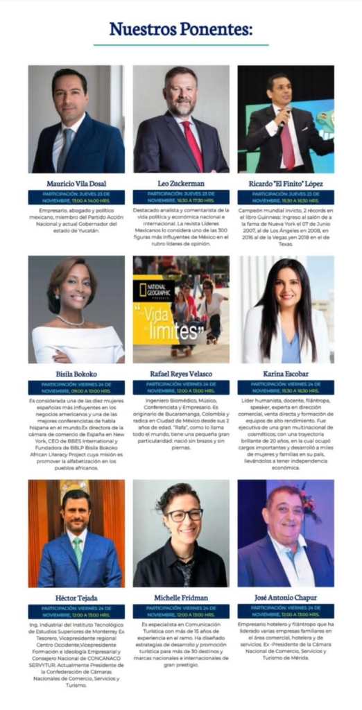 El programa de actividades correspondiente al día 23 de noviembre, las ponencias estarán a cargo de Mauricio Vila Dosal, Gobernador del Estado de Yucatán; Leo Zuckerman, destacado analista y comentarista de la vida política y económica nacional e internacional; Ricardo «El Finito» López, campeón mundial invicto, 2 récords en el libro Guinness: Ingreso al salón de a la fama de Nueva York el 07 de Junio 2007, al de Los Ángeles en 2008, en 2016 al de la Vegas y en 2018 en el de Texas.