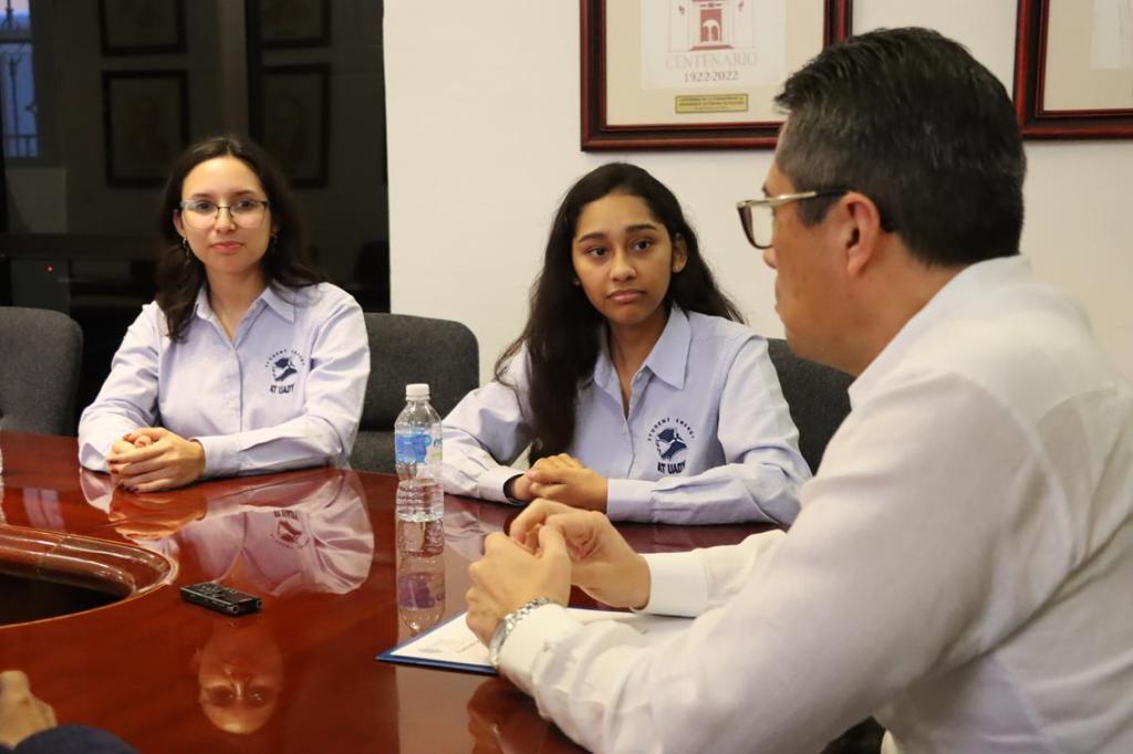 En una reunión con el rector de la UADY, Carlos Alberto Estrada Pinto, y con la directora de la FIQ-UADY, Dalmira Rodríguez Martín, las jóvenes destacaron que esta experiencia les permitió expandir sus conocimientos y aprender más sobre las estrategias que se implementan en otros países con el fin de abonar al cuidado al medio ambiente.