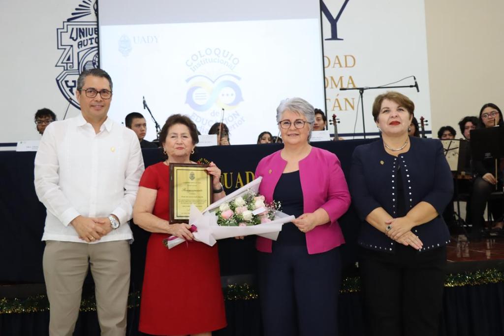 Posterior al acto inaugural, se reconoció a la maestra Miriam Solís Alpuche por su dedicación, compromiso y aportaciones en las diferentes funciones que desempeñó durante 57 años en la Universidad, la cual, de 2007 a la fecha está adscrita a la Coordinación del Sistema de Educación Media Superior como supervisora de escuelas preparatorias incorporadas a la UADY.