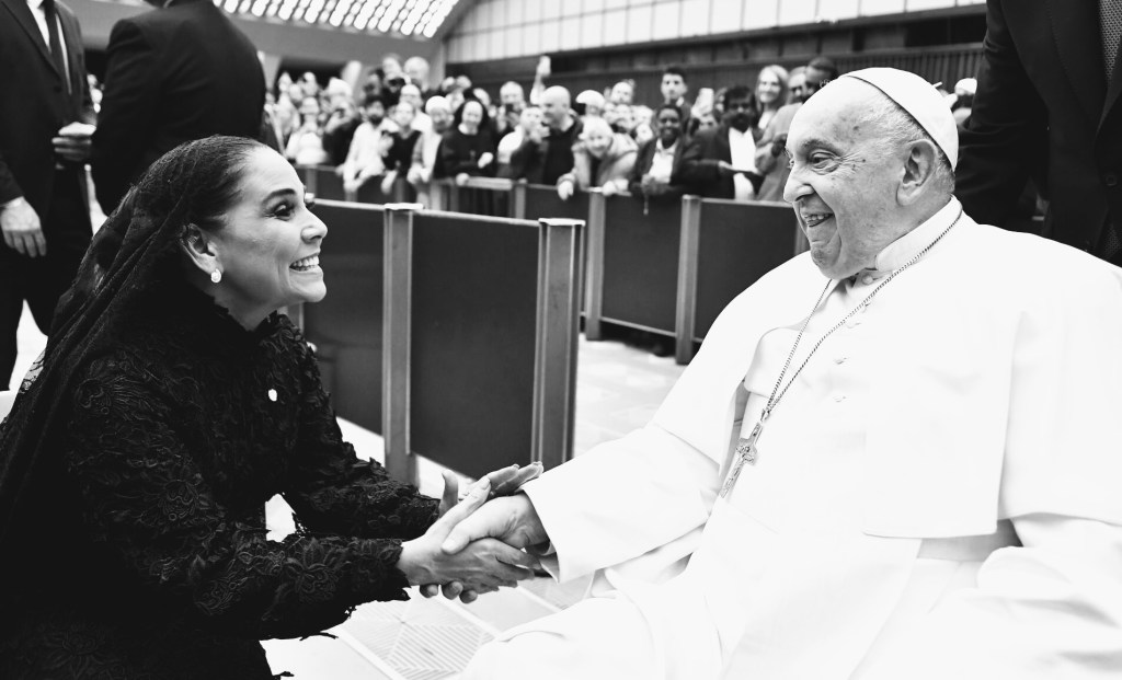 Mientras en Quintana Roo una larga fila de cruces y ejecutados exhibe que el estado sigue cuesta abajo dando tumbos en manos de la delincuencia organizada por el gobierno fallido de la gobernadora Mara Lezama, esta señora como “alma en pena” o “paloma negra” vestida de luto ¿Por tanto muerto? De rodillas ante el papa llegó al Vaticano a entregar una cartita y una ridícula réplica en miniatura del trenecito maya ¿Sabe Usted cuántos modelos de última generación hay en Europa?