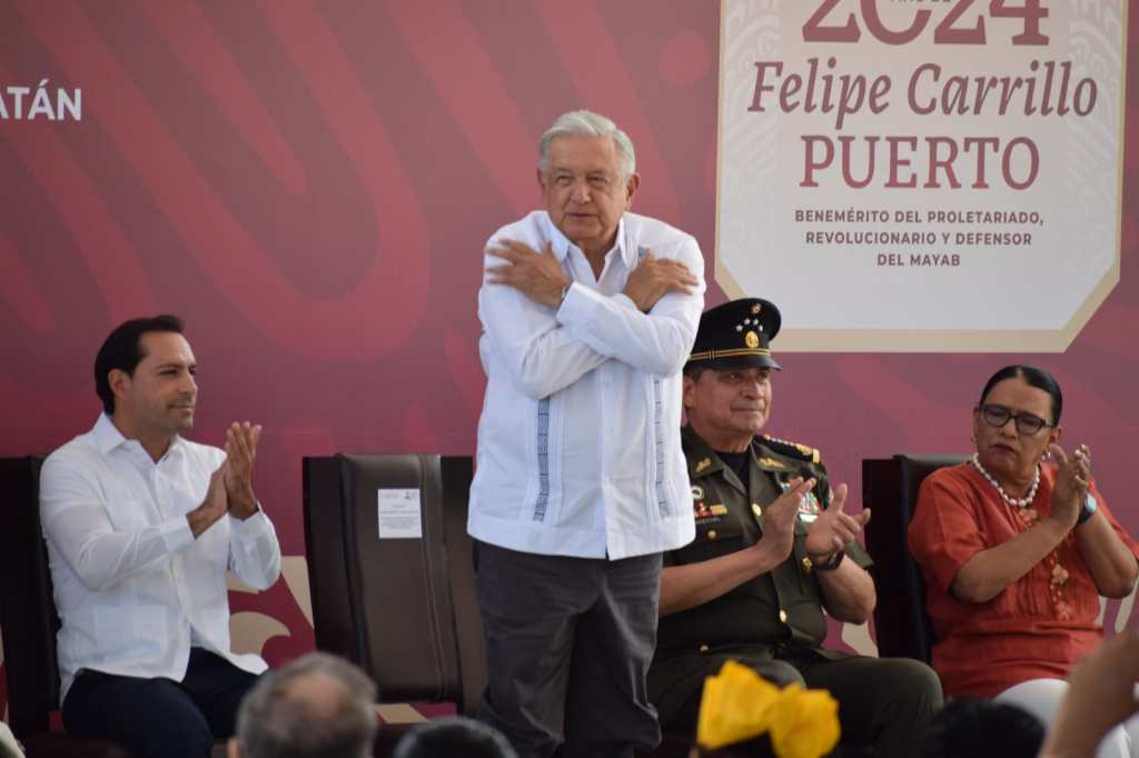Con una imponente presencia militar, dos helicópteros y un sólido despliegue de seguridad, el presidente AMLO dedicó tiempo para saludar a los miles de seguidores presentes. Además, se contó con la presencia del Gobernador Mauricio Vila Dosal, así como miembros del Cabildo, directores, subdirectores y jefes de área.