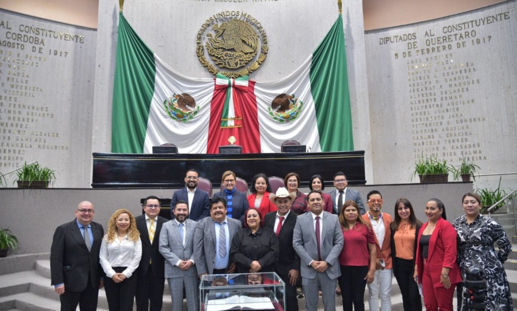 En el Recinto Oficial de Sesiones, los diputados Jaime Enrique de la Garza Martínez, Luis Ronaldo Zárate Díaz y Marco Antonio Martínez Amador, presidente secretario y vocal de la Comisión Permanente de Atención y Protección de Periodistas, condujeron el desarrollo del acto.