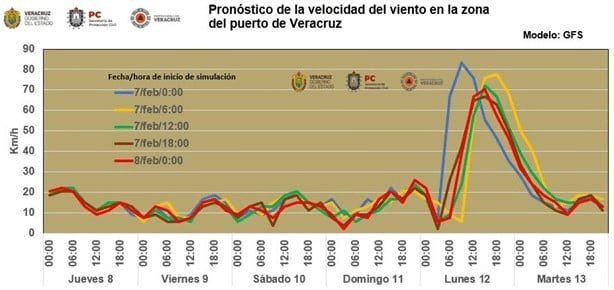 La Secretaría de Protección Civil del estado pronostico un evento de norte en Veracruz para el día lunes 12 de febrero, el cual se prevé que tenga rachas fuertes que pudieran causar algunas afectaciones en la zona conurbada Veracruz – Boca del Río.