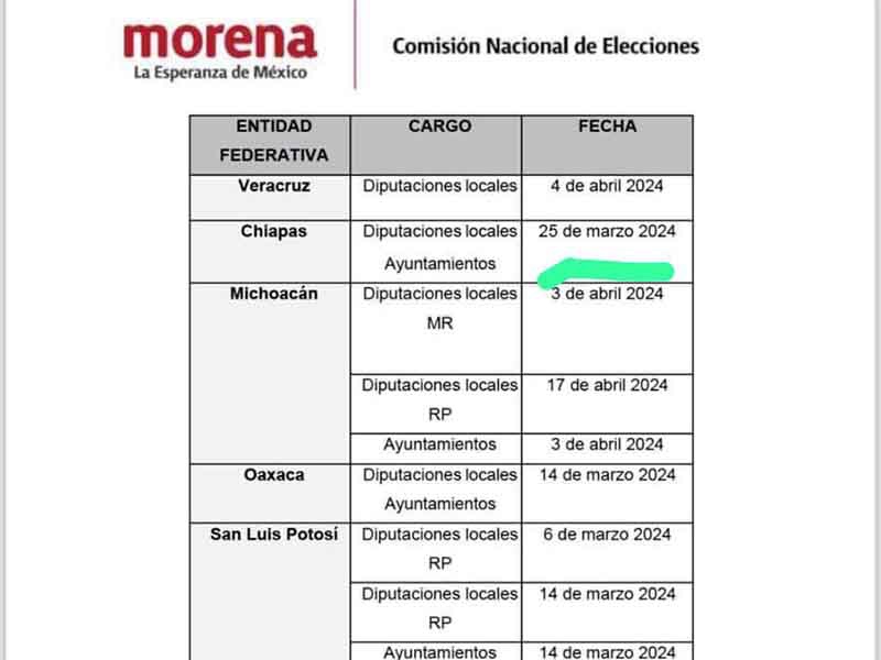 Por lo que, será el próximo 25 de marzo que se conocerán, quienes serán los abanderados de Morena a las alcaldías del estado y los candidatos a diputaciones locales en Chiapas.
