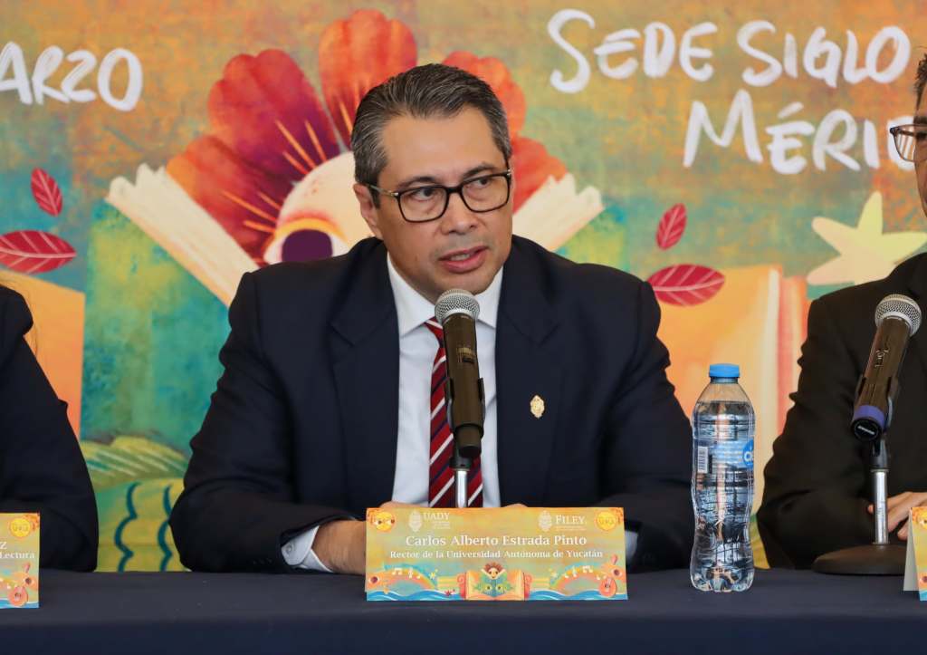 En rueda de prensa ofrecida esta mañana en la librería “Rosario Castellanos” del Fondo de Cultura Económica en la Ciudad de México, la cual fue presidida por Carlos Estrada Pinto, rector de la UADY, acompañado por María Teresa Mézquita Méndez, directora general de la FILEY y Roberto Domínguez Cáceres representante de la institución académica UC-Mexicanistas, compartieron algunos detalles sobre las actividades que se llevarán a cabo en la próxima edición de la FILEY, considerada el evento cultural más grande del sureste mexicano.