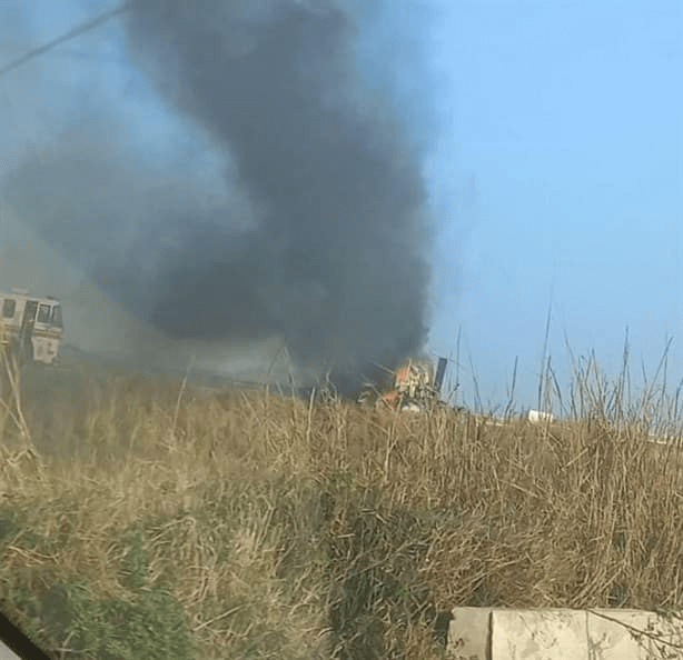 Bomberos municipales de inmediato arribaron a la zona del bulevar kilómetro 13.5 para sofocar las fuertes llamas que dejaron una enorme columna de humo negro que se alcanzaba a ver hacia la zona de la carretera rumbo a Tamsa.