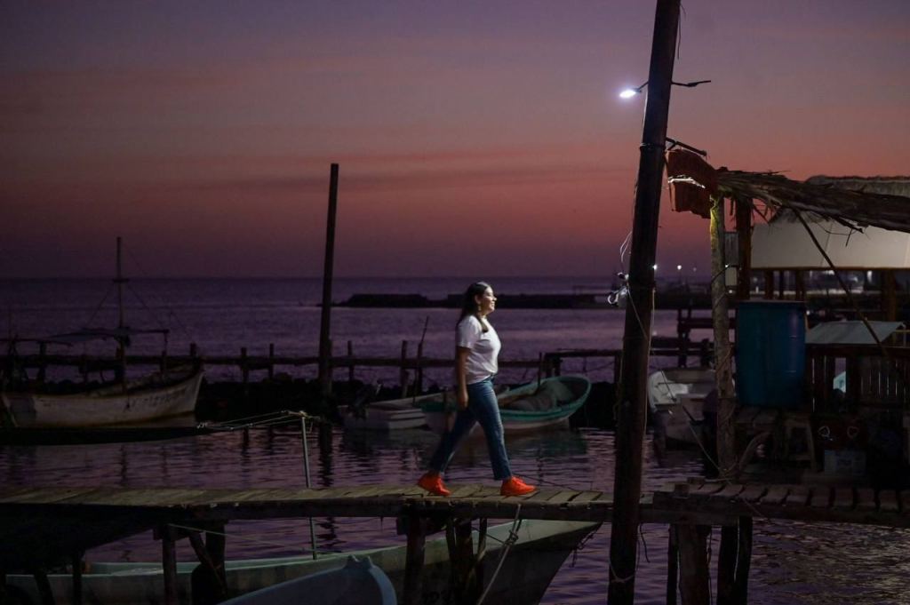 La candidata de Movimiento Ciudadano a gobernadora de Yucatán, acompañada por la candidata a diputada federal por el distrito II Esthefanía Basto Rosado, compartió los primeros minutos laborales del día con hombres y mujeres de mar, con quienes abordó su lancha y compartió parte de la jornada en este puerto de la costa yucateca, y escuchó planteamientos sobre los problemas que viven a diario.