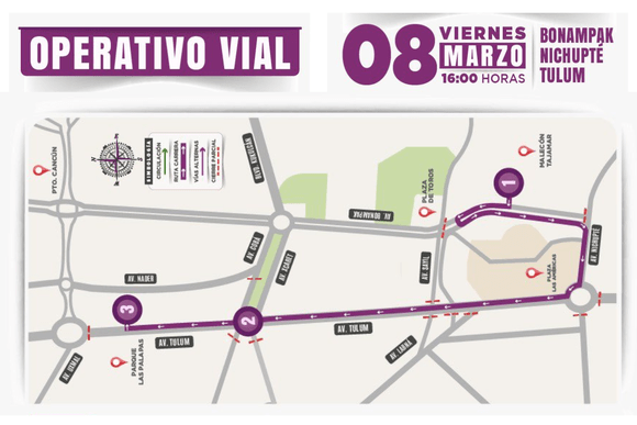 Con motivo del Día Internacional de la Mujer, la Dirección de Tránsito de Cancún informó sobre los cierres parciales de calles en varias vialidades importantes para mañana 08 de marzo.
