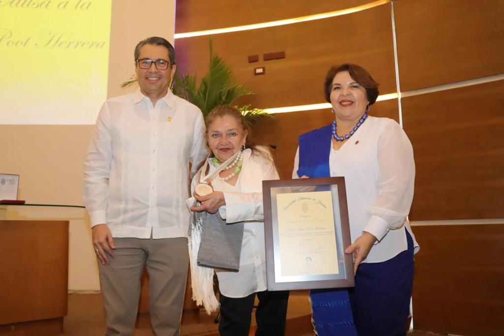 Ante miembros del XX Consejo Universitario, invitados especiales, familiares y amigos, la escritora aseguró que no sabía por qué se lo entregaban, “pero un alumno me dijo: la reconocen por lo que nos ha hecho conocer, entonces acepté más que encantada y aquí estamos”.