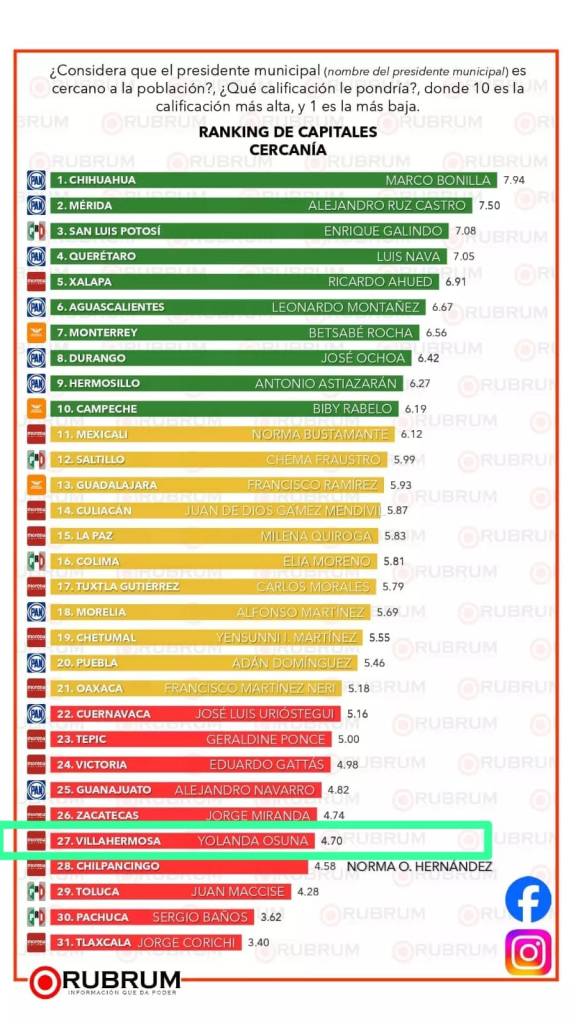 La evaluación fue para las administraciones de las 31 capitales de nuestro país; calificaron «Trabajo y Desempeño»; calificación de los «Servicios Públicos»; cómo Alcalde su «Cercanía con la población»; y finalmente la