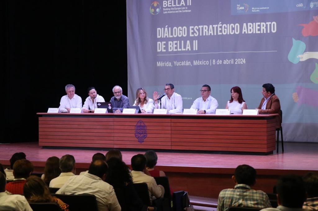 Por otro lado, el director general de la CUDI, Moisés Torres, indicó que este diálogo que se realiza en la UADY tiene como objetivo concebir la visión estratégica del rol de las universidades y de las RNIE ante los desafíos de la economía digital y producir una hoja de ruta que les permita, en el marco del proyecto BELLA II y de la Alianza Digital EU-LAC, contribuir significativamente al desarrollo sostenible del ecosistema digital RedCLARA.