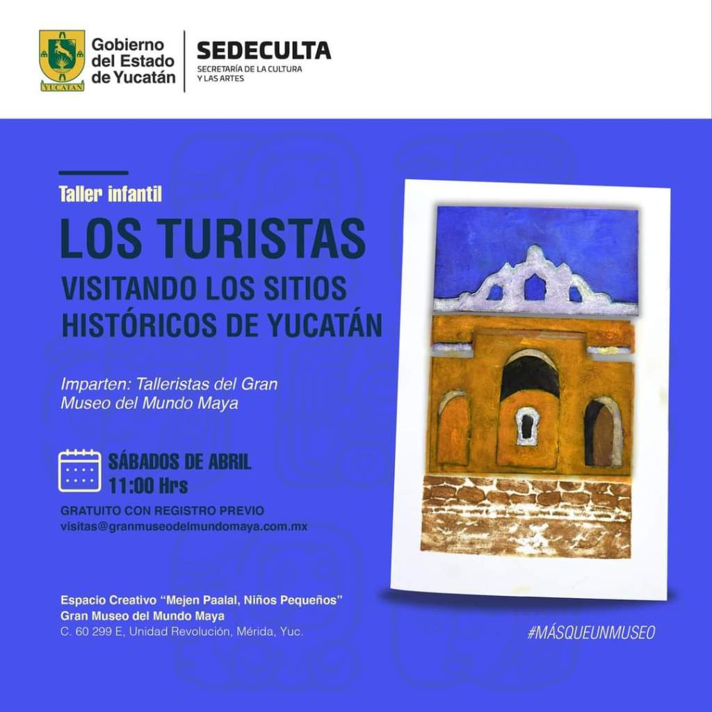 También se impartirán los talleres Los turistas. Visitando sitios históricos de Yucatán, los días 20 y 27; y El gran reto. Jugando con números mayas, el 21 y 28; ambos en el espacio creativo Mejen Paalal del Museo Maya a las 11:00. En la Comunidad Educativa Yaxunah realizarán el de apreciación titulado Literatura + Ilustración, el 23.