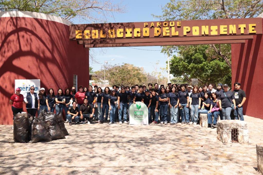 50 estudiantes de dicho plantel acudieron al Parque Ecológico del Poniente para realizar la limpieza del área en colaboración con personal de los Programas Institucionales Espacio Libre de Humo de Tabaco y Emisiones, Voluntariado UADY y UADY Sustentable.