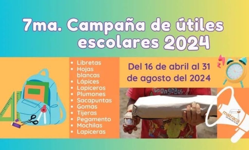 El Movimiento de Apoyo a Niños Trabajadores y de la Calle, Asociación Civil (Matraca A.C.) recolectara útiles escolares para entregarlos a estudiantes en situación vulnerable.