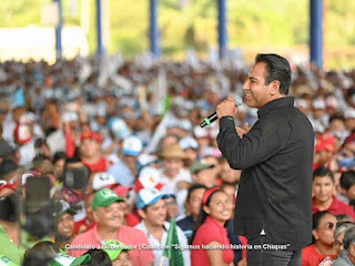 “A mí, me toca jugar un papel de pacificador, lo he dicho en muchas partes de Chiapas y lo expreso de manera abierta y franca, mi participación como su próximo gobernador, no es el resultado de una aspiración personal, es el resultado de todo el pueblo de Chiapas, que nos ha acompañado, y con la legitimidad que voy a llegar, quiero que Chiapas se convierta en el estado más pacífico y más seguro para vivir en la República Mexicana”, indicó en el mítin de Tapilula.