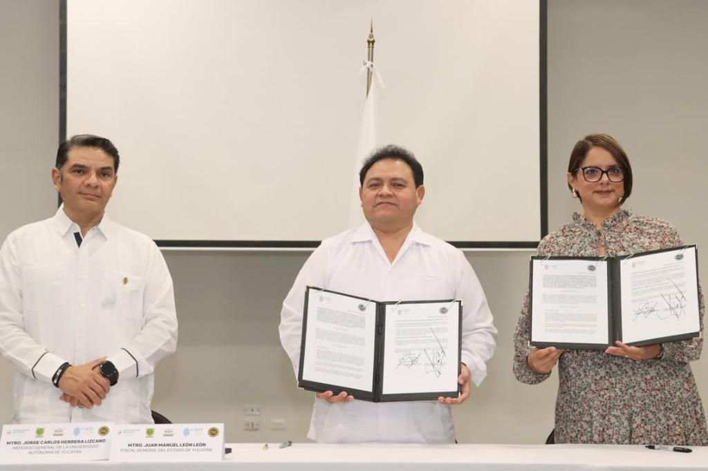 La Universidad Autónoma de Yucatán (UADY) firmó un convenio con la Fiscalía General del Estado para consolidar la formación y capacitación de abogados para desempeñarse en las Unidades de Litigación de la corporación.